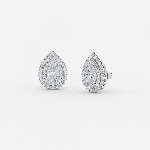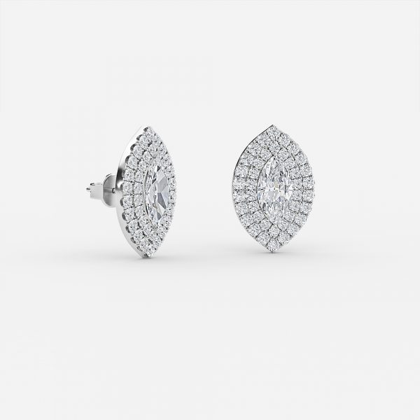 Diamond halo stud earrings, also known as halo earrings, are stud earrings with a gemstone halo setting. The center crystal of an earring is held inside a loop of relatively small precious gems, creating a "halo" around the center diamond.