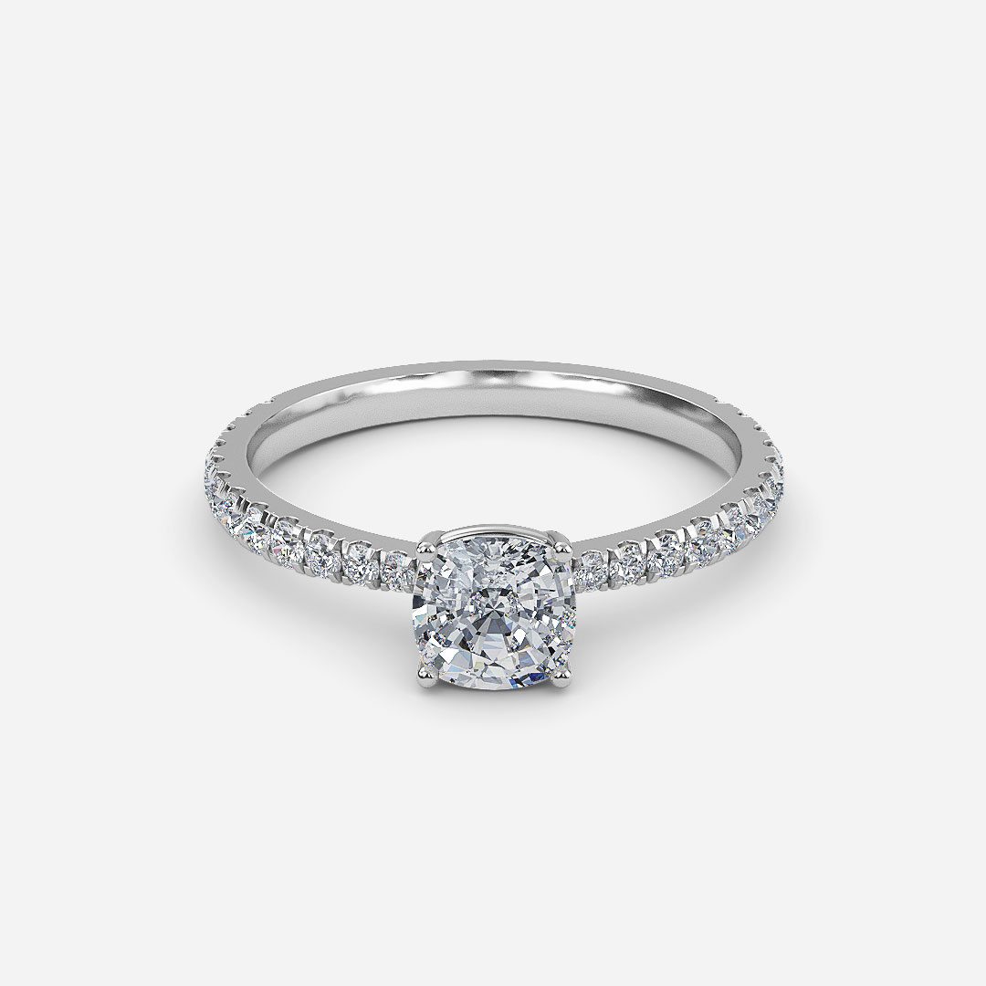Crown Cushion Diamond Band Engagement Ring