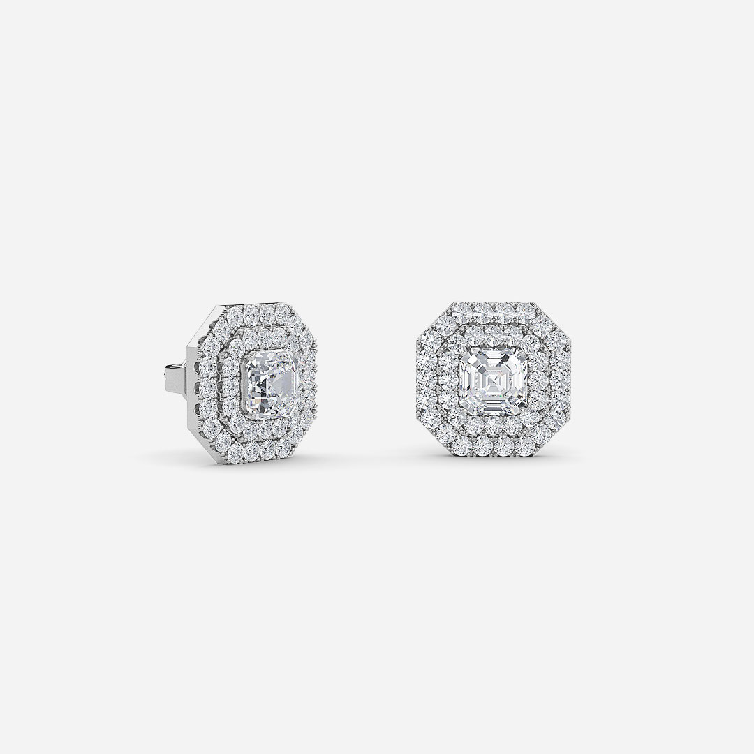 Asscher Lab Grown Diamond Double Halo Earrings