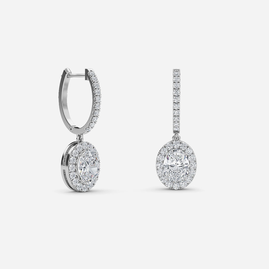 Oval Diamond Halo Drop Earrings