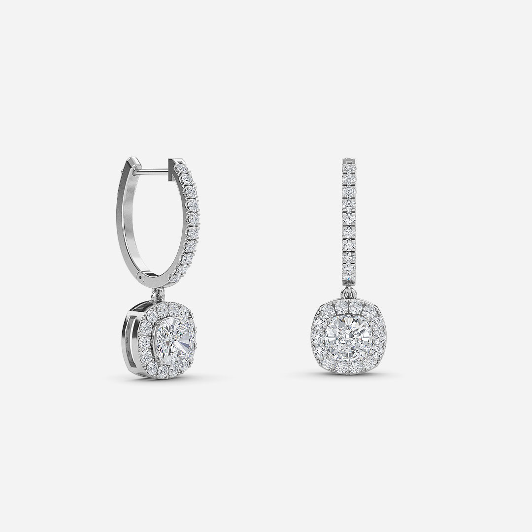 Cushion Diamond Halo Drop Earrings