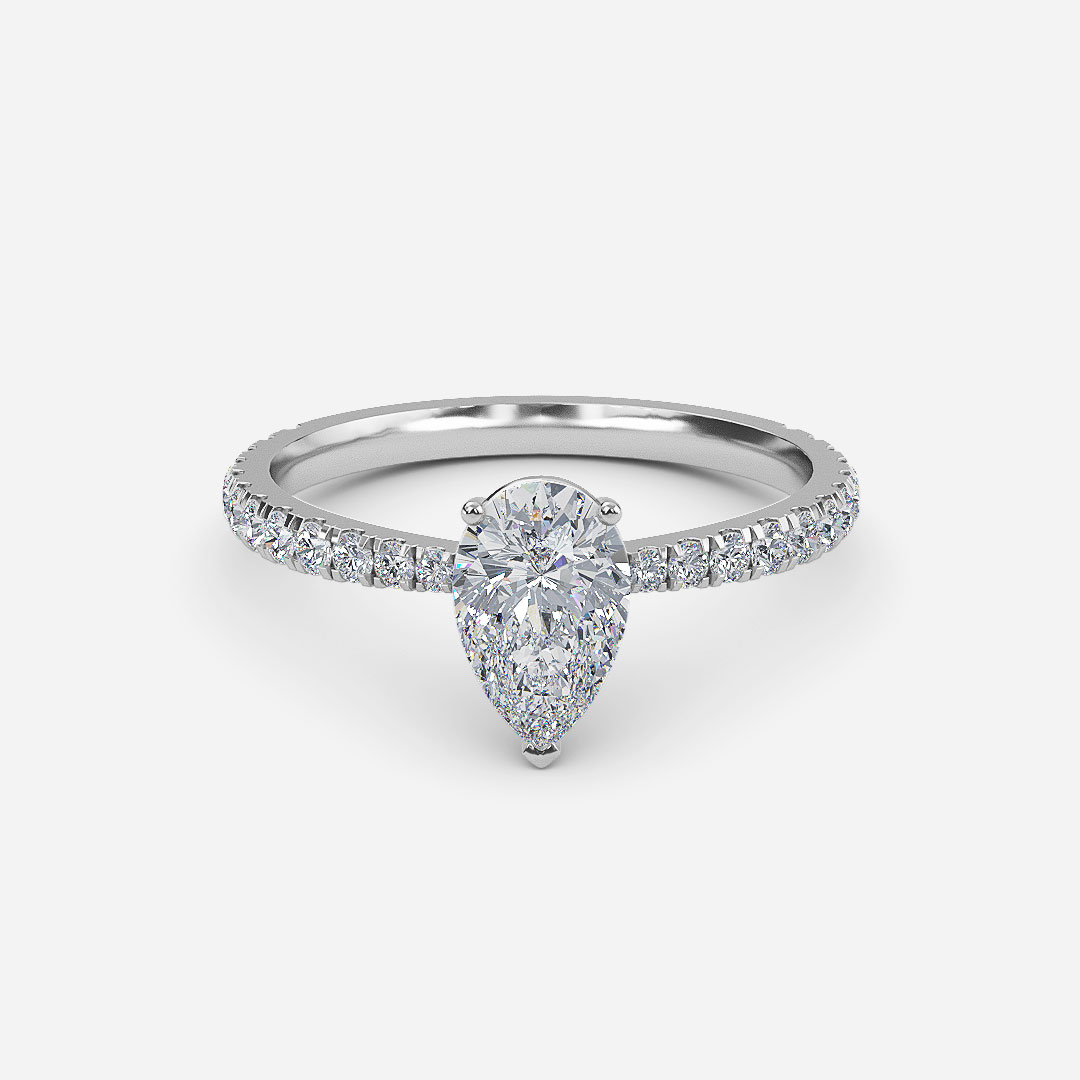 Crown Pear Diamond Band Engagement Ring